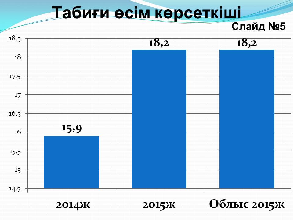 Табиғи өсім көрсеткіші 18,2 құрады, (2014 жылы-15,9) (Облыс көрсеткіші-18,2)