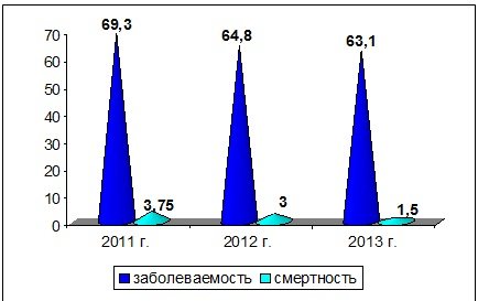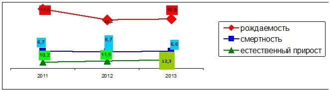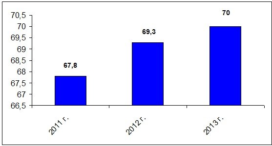 Продолжительность жизни: 2011г. – 67,8; 2012г. – 69,3; 2013 г.- 70.